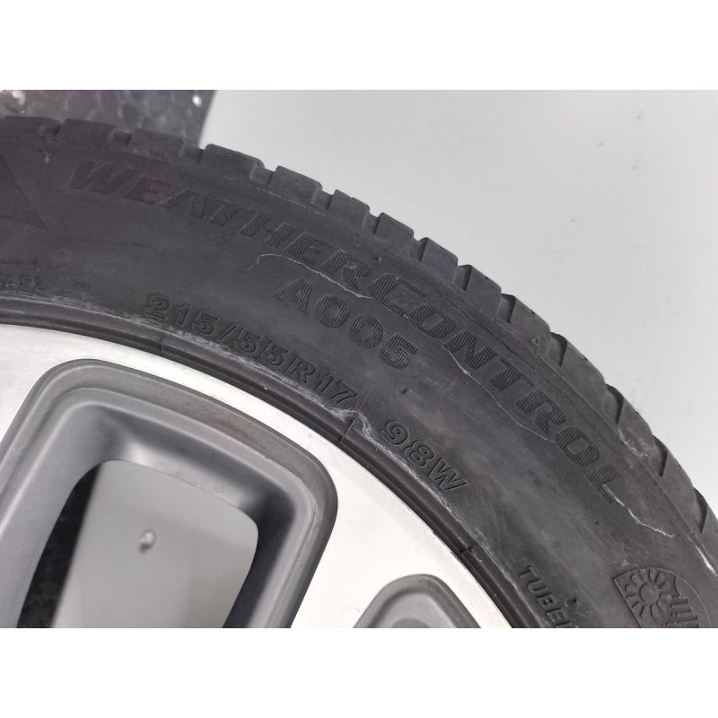 CZĘŚĆ JEST UŻYWANA. POCHODZI Z LEGALNEJ STACJI DEMONTAŻU POJAZDÓW. POSŁUGIWANIE SIĘ INDEKSEM ( ID ) PRZYSPIESZY ZLOKALIZOWANIE CZĘŚCI NA MAGAZYNIE I UŁATWI ZŁOŻENIE ZAMÓWIENIA. SZEROKOŚĆ 7.0J X17H2 ET 40 ROZSTAW 5X110 OTWÓR CENTRALNY 65,1 OPONA CAŁOROCZNA BRIDGESTONE WEATHER CONTROL A005 215/55 R17 PRODUKCJA 33 TYDZIEŃ 2019 ROKU BIEŻNIK 4,35mm USZKODZENIA WIDOCZNE NA ZDJĘCIACH