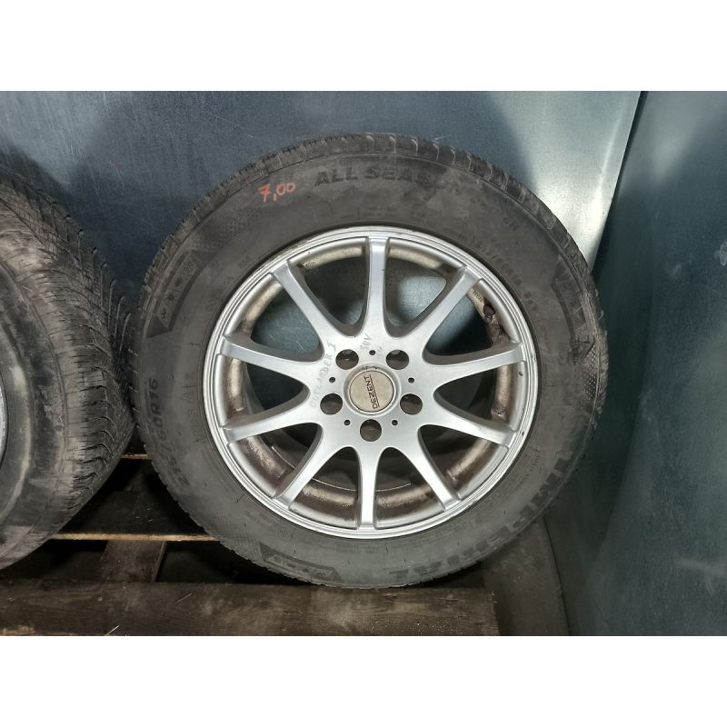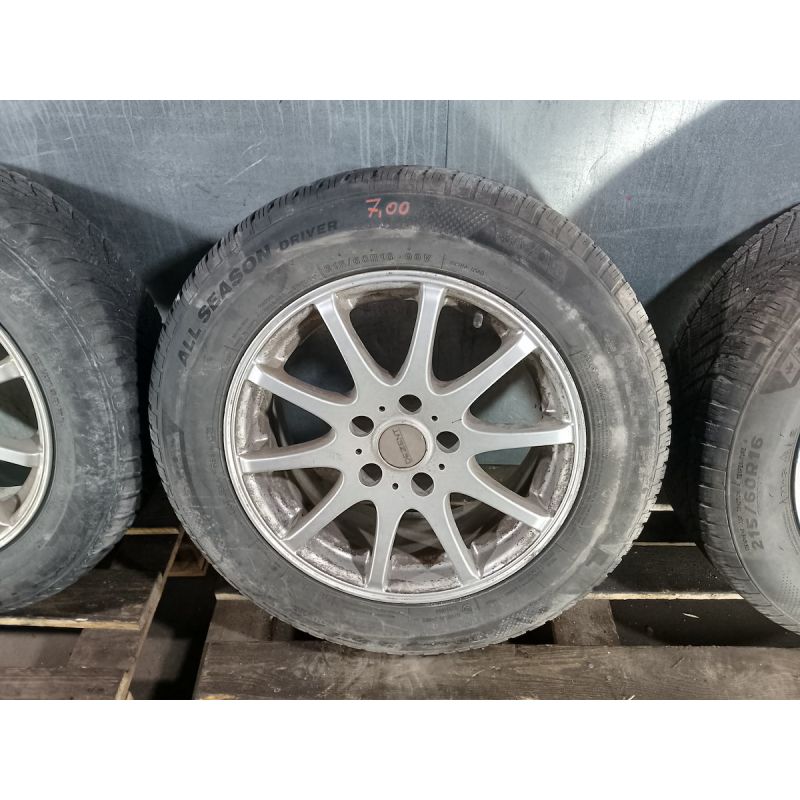 CZĘŚĆ JEST UŻYWANA. POCHODZI Z LEGALNEJ STACJI DEMONTAŻU POJAZDÓW. POSŁUGIWANIE SIĘ INDEKSEM ( ID ) PRZYSPIESZY ZLOKALIZOWANIE CZĘŚCI NA MAGAZYNIE I UŁATWI ZŁOŻENIE ZAMÓWIENIA. FELGA SZEROKOŚĆ FELGI 7J OSADZENIE ET 40 OTWÓR CENTRALNY 67,1 ILOŚĆ 4 SZT ŚREDNICA FELGI 16 PRODUCENT DEZENT ROZSTAW ŚRUB 5x114,3 OPONA IMPERIAL All Season Driver 2 SZT 215/60R16 ROK PRODUKCJI 2022 INDEKS PRĘDKOŚCI V DO 240 KM/H INDEKS NOŚNOŚCI 99 DO 775 KG PRZYCZEPNOŚĆ KLASA B WYSOKOŚĆ BIEŻNIKA 2x7 mm. NEXEN N'Blue 4 Season 2 SZT 215/60R16 ROK PRODUKCJI 2021 INDEKS PRĘDKOŚCI H DO 210 KM/H INDEKS NOŚNOŚCI 95 DO 690 KG PRZYCZEPNOŚĆ KLASA B WYSOKOŚĆ BIEŻNIKA 2x6 mm