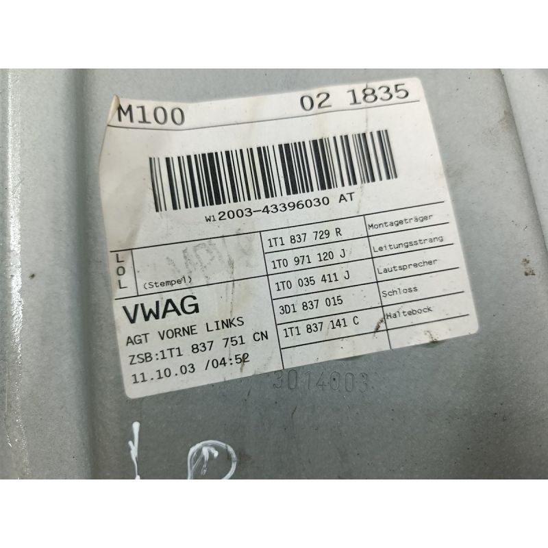 PODNOŚNIK SZYBY LEWY PRZÓD Z STELAŻEM VW TOURAN I
