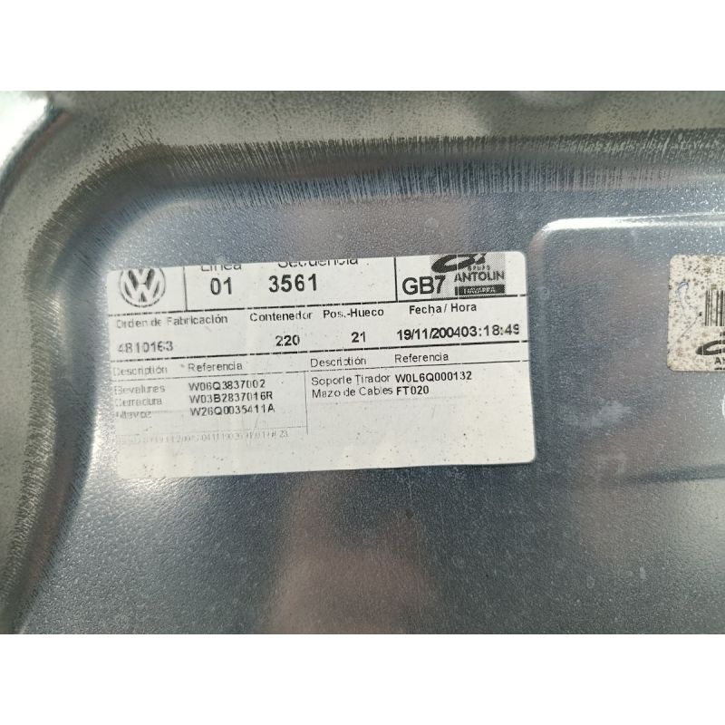 PODNOŚNIK SZYBY PRAWY PRZÓD Z STELAŻEM VW POLO IV FL 9N 1.4 TDI 70KM 1.4 TDI 2008 6Q3837756A  6Q3837002  6Q2959801E LC7V 70 5252