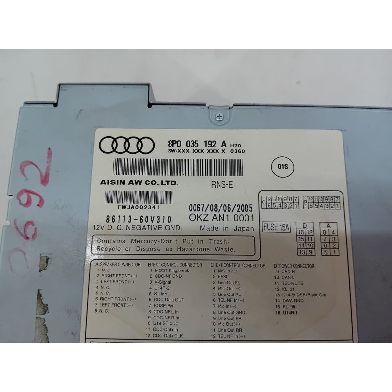 RADIO AUDI A3 ( 8P1 ) 1.9 TDI 1.9 TDI 2006 8P0035192A 86113-60V310